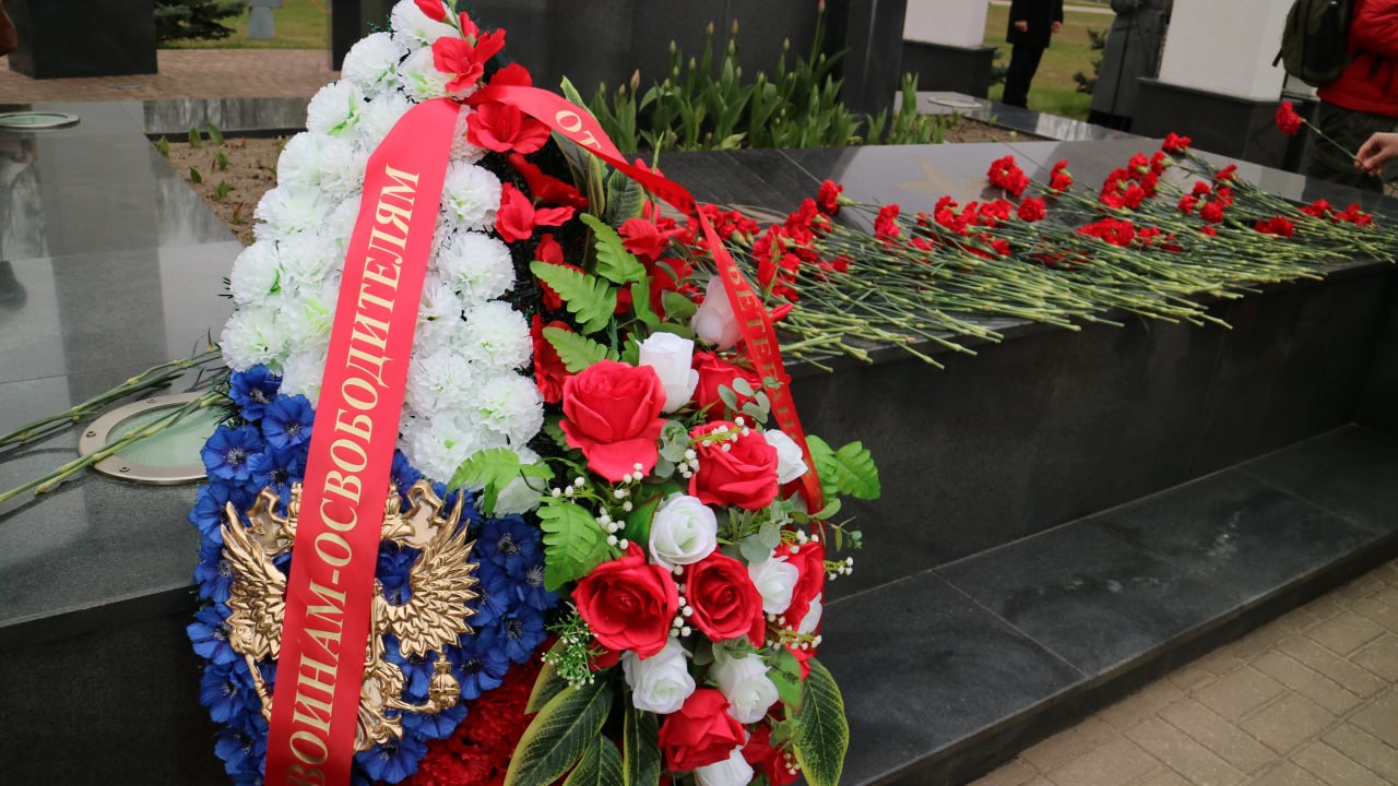 После церемонии награждения участники митинга почтили память героев минутой молчания и возложили венки и цветы к мемориалу.