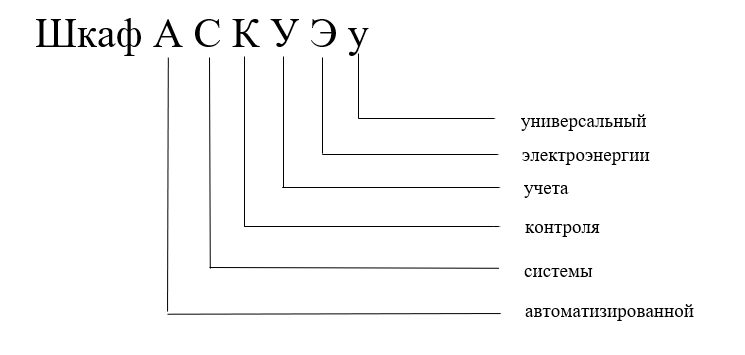 Структура условного обозначения шкафа автоматизированной системы контроля учета электроэнергии универсального