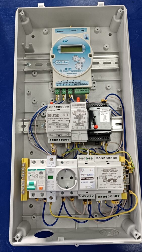 Шкаф АСКУЭу с устройством сбора и передачи данных “КУБ-1М” предназначен для сбора, обработки и передачи информации, накапливаемой счетчиками электрической энергии различных производителей, на верхний уровень в ЦОД.